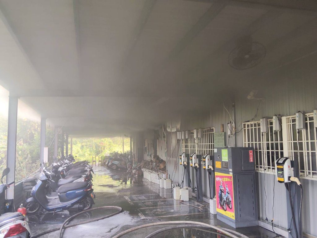 屏東縣琉球鄉電動機車換電站火警,消防隊員前往灌救。翻攝畫面