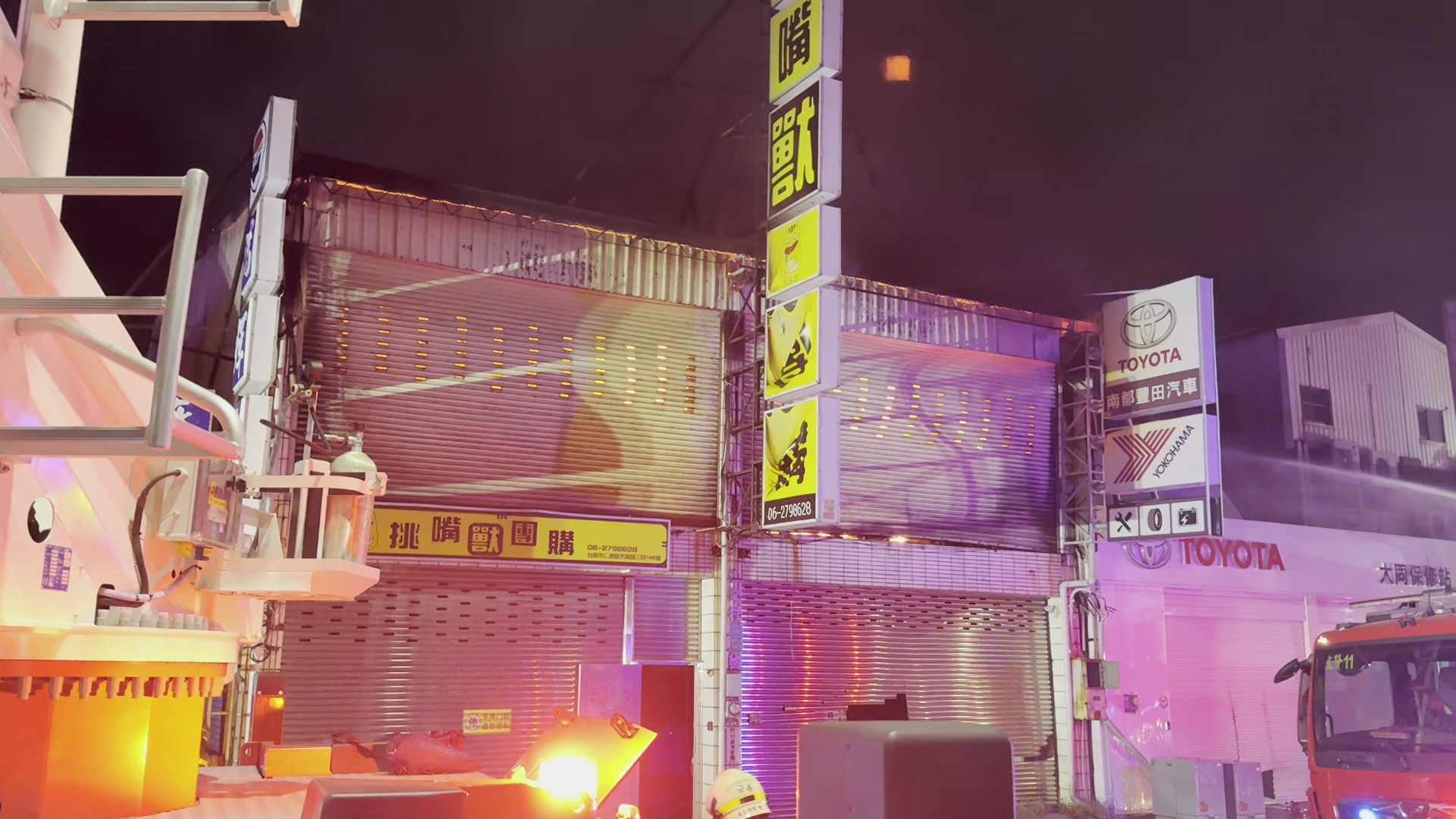消防人員到場後,汽修廠內已有大量黑煙竄出,左邊的違建樣品屋一度有延燒疑慮,至於右邊的團購店二樓付之一炬,確認共有3間鐵皮屋陷入火海。由於還有民眾受困,救難人員立即架梯搶救成功將男子救出,該名約70歲男子吸入部分濃煙,血壓高,經文賢分隊救護車送往成大醫院治療,所幸意識清楚、無明顯外傷。