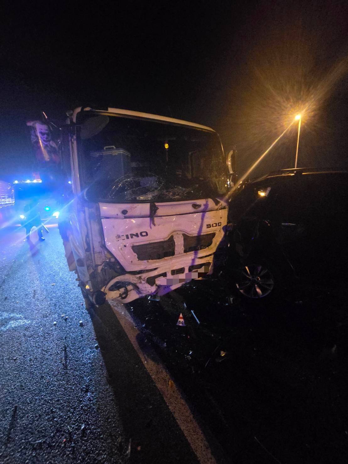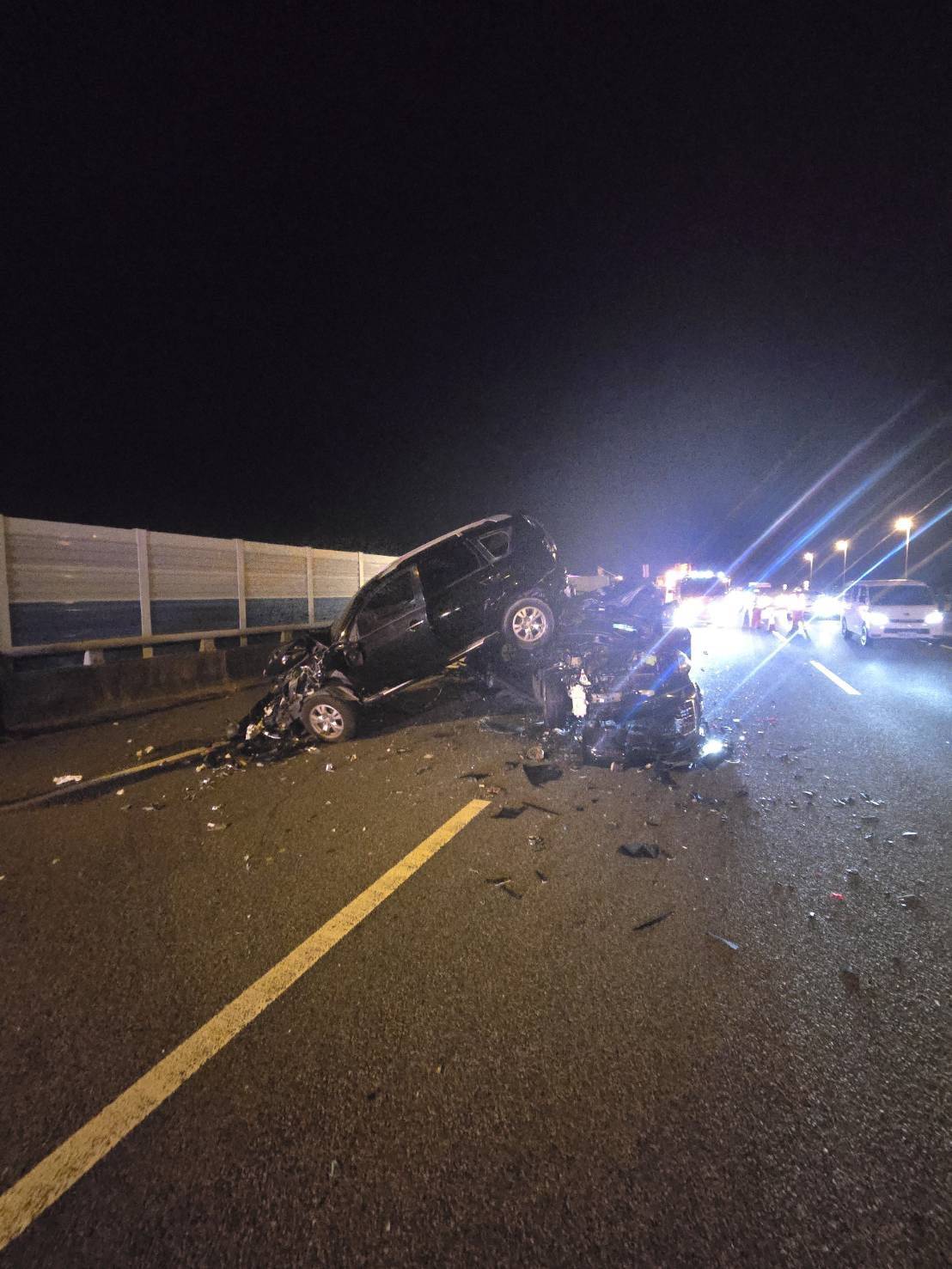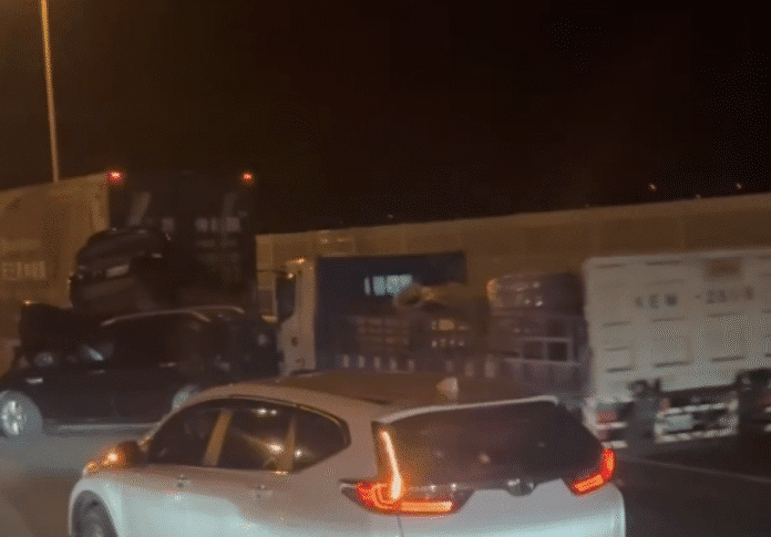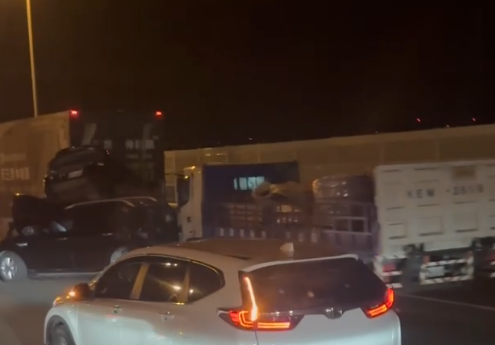 【Lai傳媒、記者爆料網/周庭慶/苗栗報導】國道3號南下114.9公里苗栗路段今(16)日晚間發生重大連環車禍!現場有2輛大貨車及2輛自小客車相撞,其中1輛自小客車並且疊在另輛自小客車車頂。