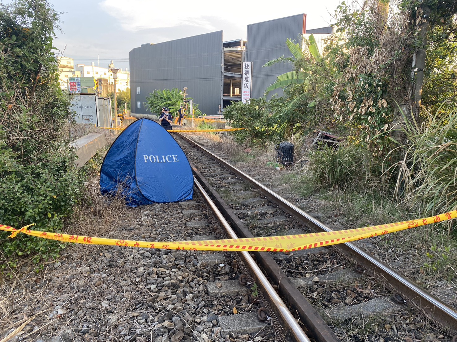 台鐵內灣支線17歲少年闖入軌道遭列車撞死,警方封鎖現場調查。翻攝畫面