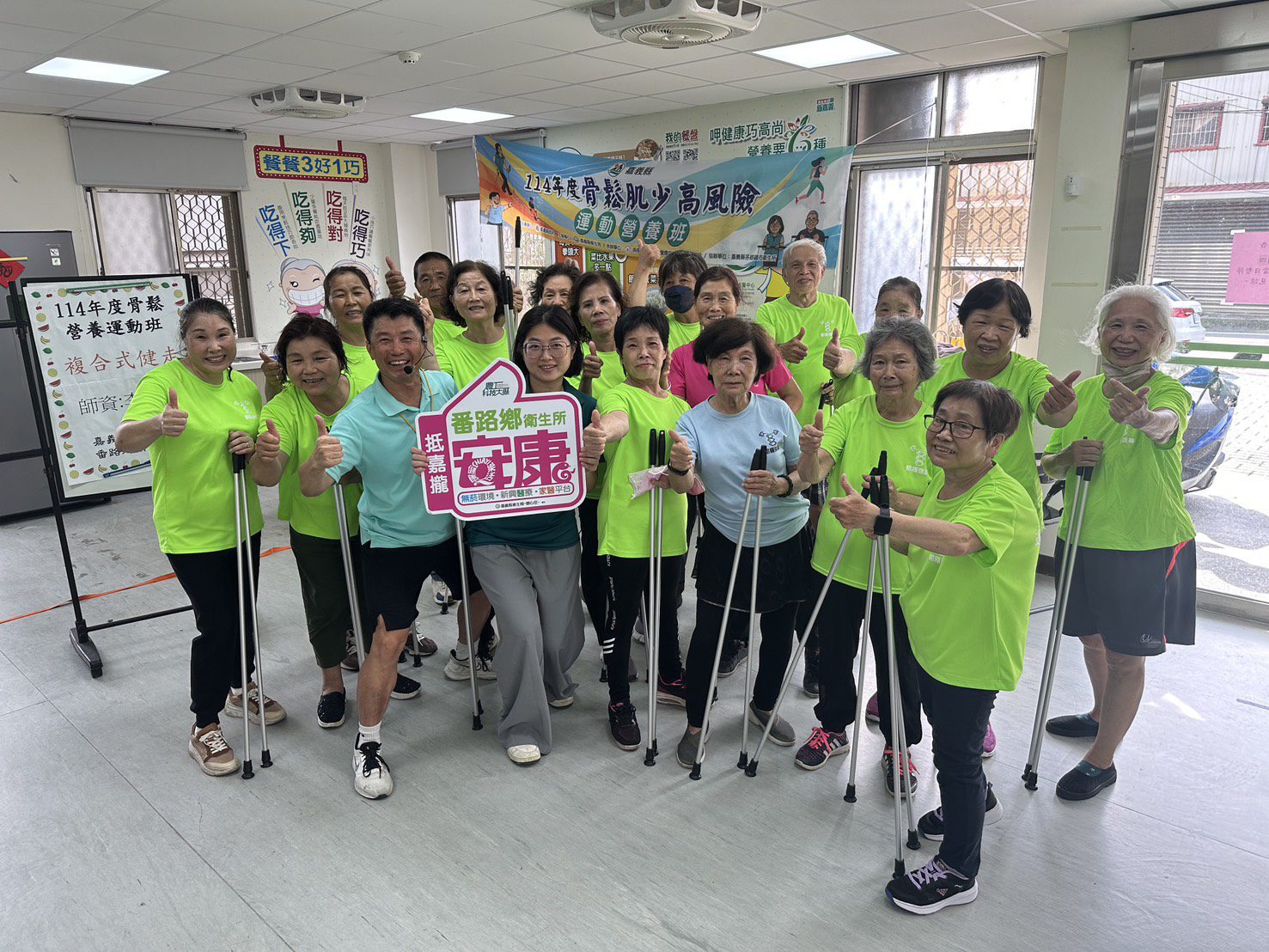 嘉義縣番路鄉衛生所連續兩年開辦「骨鬆肌少高風險運動營養班」,積極邀請骨鬆肌少風險族群參加。課程結訓後,學員自發揪團成立健康運動班,邀請老師到府延續訓練,將健康習慣融入日常生活,展現社區自主維持健康的決心與活力。