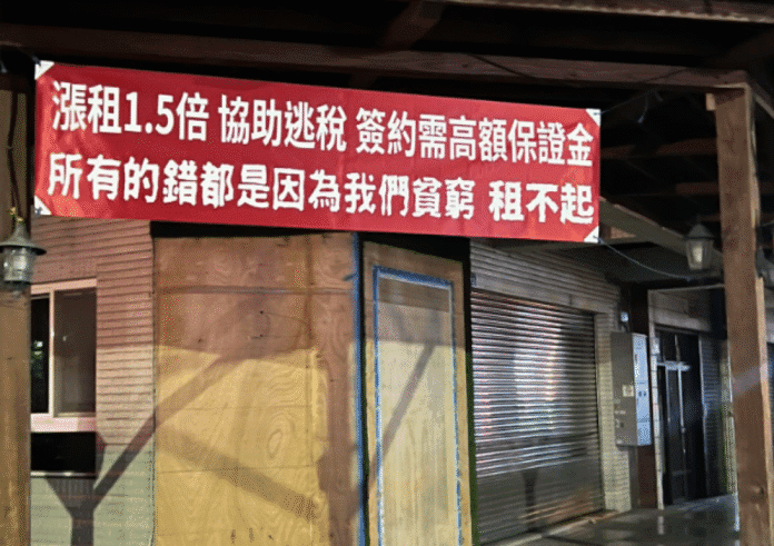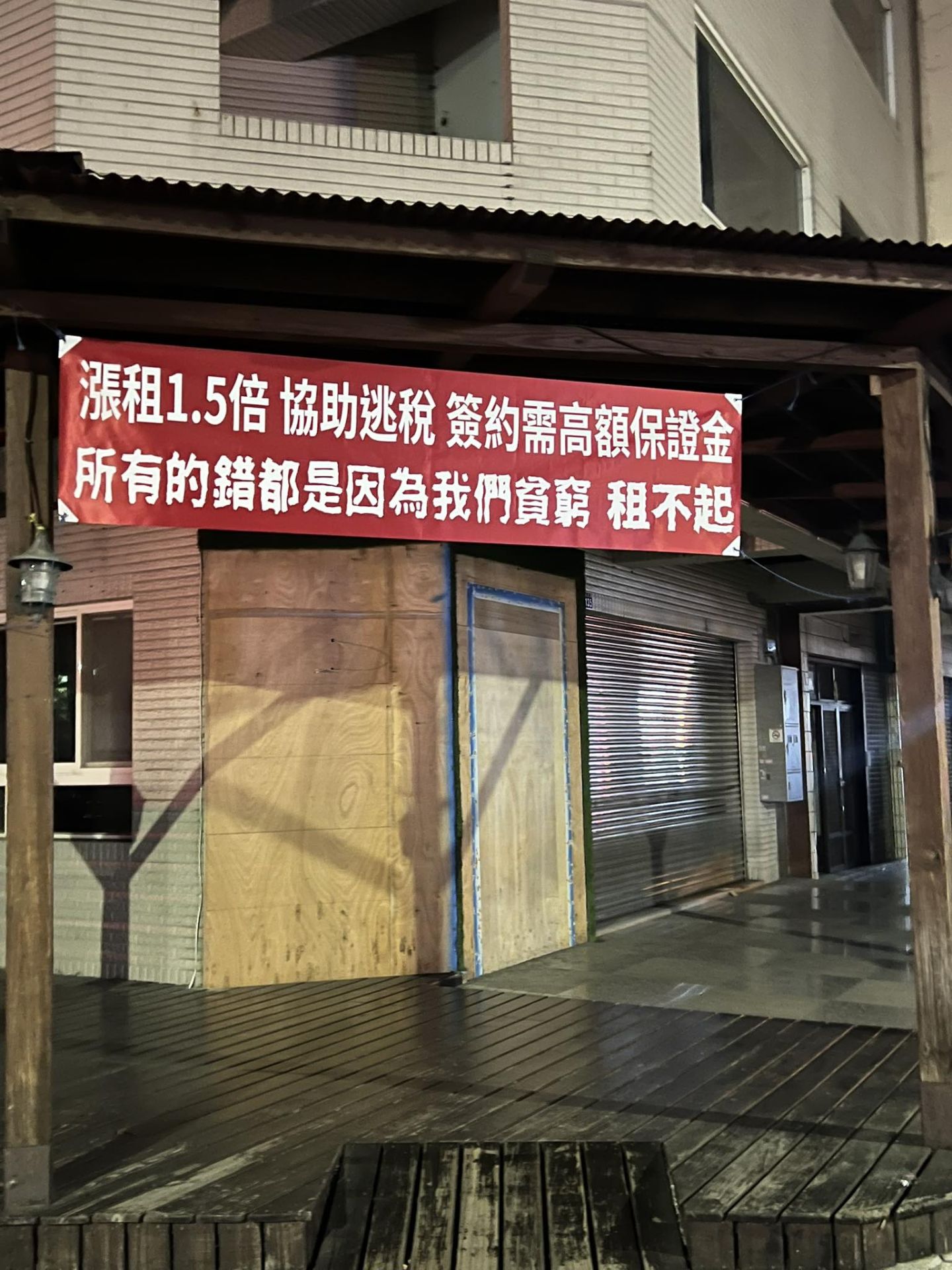 逢甲商圈有店家不滿房東漲租,掛布條說「漲租1.5倍協助逃稅」、「所有的錯都是因為我們貧窮」,而房東也出面回應了。