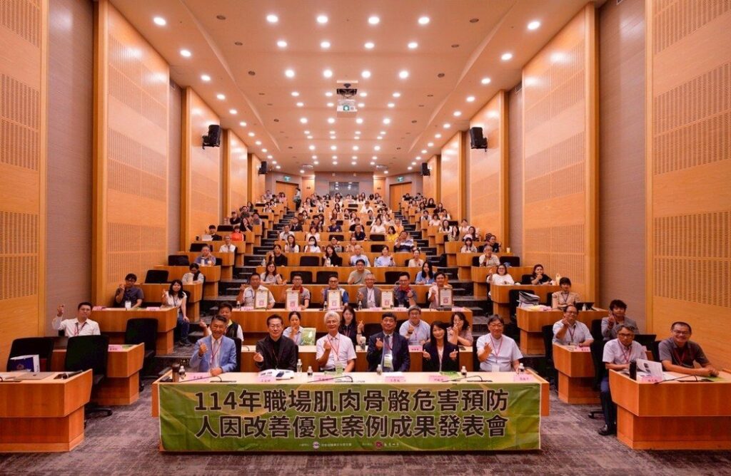 職安署於本(114)年10月17日委託長榮大學,假北科大集思會議中心舉辦「114 年職場肌肉骨骼危害預防人因改善優良案例成果發表會」,吸引了來自各行各業的企業代表、職業安全衛生專家、學者及政府官員等近150位參與者,會中邀請產官學研等代表進行座談外,也邀請在重複作業人因危害預防績效優秀的示範企業分享過程改善及經驗,開展國內產業政府政策轉化為企業治理與永續健康場所的具體實踐。