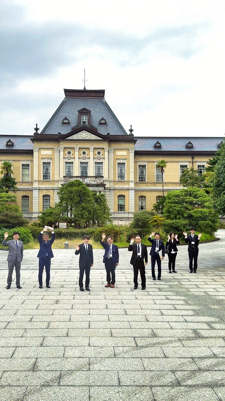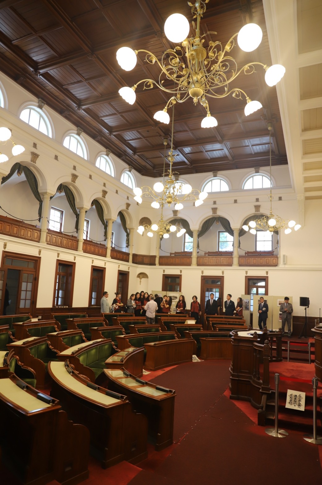 下午拜訪京都府議會時,團員們用音樂傳遞熱情,獻唱「跨越會歌」與「當我們同在一起」,讓日本議員們感受到台灣滿滿的人情味,隨後參觀古色古香的舊議場,晚間於百年料亭「西陣魚新」舉辦交流晚宴,與多個日台友好組織共聚一堂。