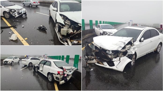 20日6時47分許,在國道5號南向50.7公里內側車道,發生兩部自小客車撞擊事故,國道警察第九大隊初步調查,27歲劉姓女子駕駛自小客車疑似水漂失控撞擊外側護欄後,滑行至內側車道,69歲李姓男子駕駛的自小客車因閃避不及,當場撞得車毀人傷。劉女左手擦傷,李男手腳、胸部不適,由救護車送往醫院就醫,雙方酒測值均為零,事故現場於7時35分排除恢復通車。
