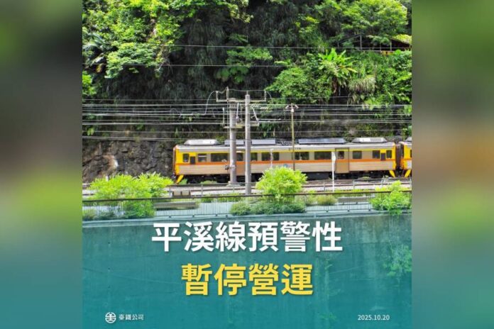 今(20)天受東北季風及風神颱風外圍環流雙重影響,迎風面地區降下豪雨,鐵路平溪線出現落石,臺鐵宣布,為行車安全考量,平溪線暫停營運,啟動公路接駁,後續配合天候,滾動檢討復駛時間。