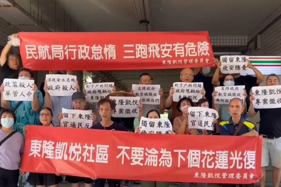 桃園機場第三跑道工程目前已經開始進行地勢墊高作業,因此也導致社區地面高度低於周邊大約4.38到9.4公尺,要徵收的居民擔心,花蓮光復堰塞湖事件中,政府早已掌握風險卻未即時處理,最終釀成無可挽回的慘重死傷,而東隆凱悅現在也存在相同潛在危險,呼籲政府要正視這個問題。
