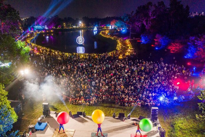 今年以「光影夢境」為主題,嘉義市首次以迪士尼經典動畫《愛麗絲夢遊仙境》為完整主題策展。八大展區融合光影科技、故事敘事與空間設計,讓北香湖化身為城市光影舞台,展現嘉義市的創意能量與觀光潛力。