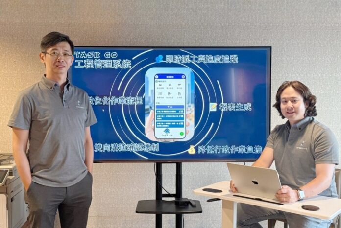 ▲Task Go工程管理系統正式亮相!(左起)匠管執行長陳炳寬和營運長潘子維。兩人展示系統核心功能,期望透過數位派工、即時進度追蹤與透明化資訊管理,協助工班更有效率地溝通與協作,翻轉傳統工地管理模式,為工程產業注入全新數位能量。(圖/業者提供)