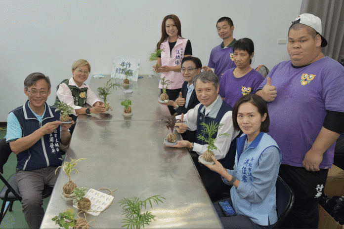 ▲陳瑞嘉、視障協會陳理事長與貴賓們共同為庇護工場灌溉象徵希望的植栽。(圖/新北市勞工局 提供)