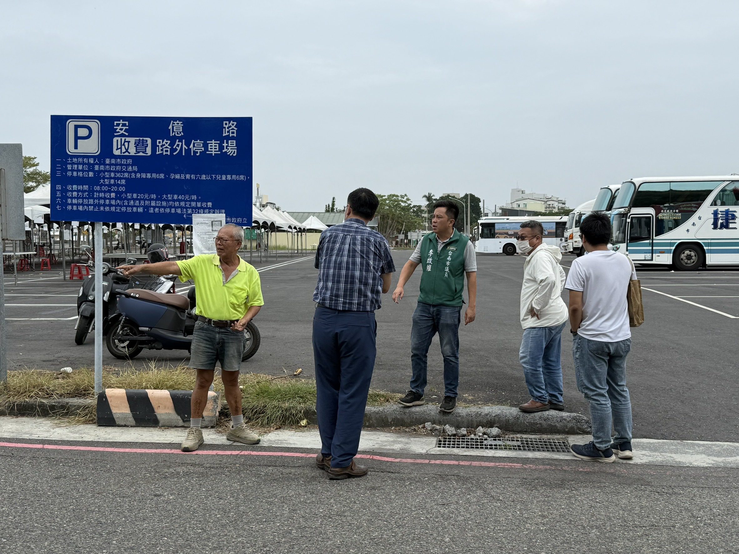 李議員說安平舊部落因為先天環境的限制,每逢假日交通阻塞擁擠,安億停車場也成了進入舊城區的轉運站,是遊覽車和大貨車最佳停車場,對舒緩安平交通不無小補,尤其原住民公園即將落成啟用,加上原本的漁人碼頭、港濱歷史公園的遊客,大型車出入動線實在有改善必要!