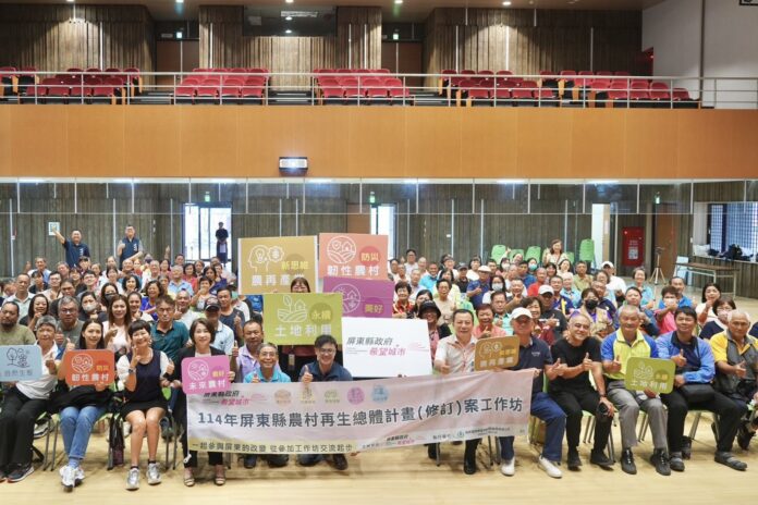 【記者范家豪/屏東報導】 農業部農村及水土保持署今(114)年度啟動全國縣市層級的農村再生總體計畫修訂,屏東縣政府配合國土計畫,21日在縣府大禮堂舉辦本年度最後一場工作坊,由縣長周春米邀集各鄉鎮市公所、社區發展協會、地方創生團隊、社區規劃師、青農聯誼會等單位參與,盼透過意見整合與交流,凝聚地方農村發展與願景。