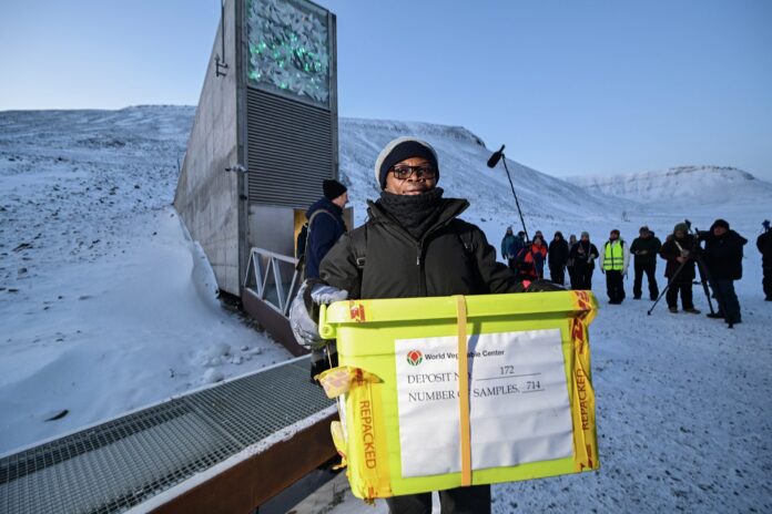 世界蔬菜中心非洲蔬菜種原庫主管Dr. Sognigbe N’Danikou 親自前往斯瓦爾巴見證種子入庫的歷史時刻