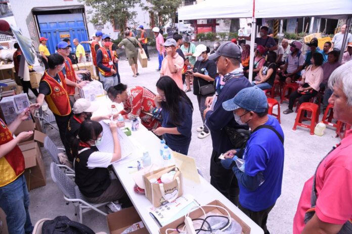 花蓮縣馬太鞍堰塞湖受災戶領取愛心家電,秩序井然。(圖∕花蓮縣政府提供)