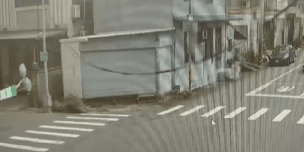 苑裡鎮號誌桿被強風吹倒。翻攝畫面