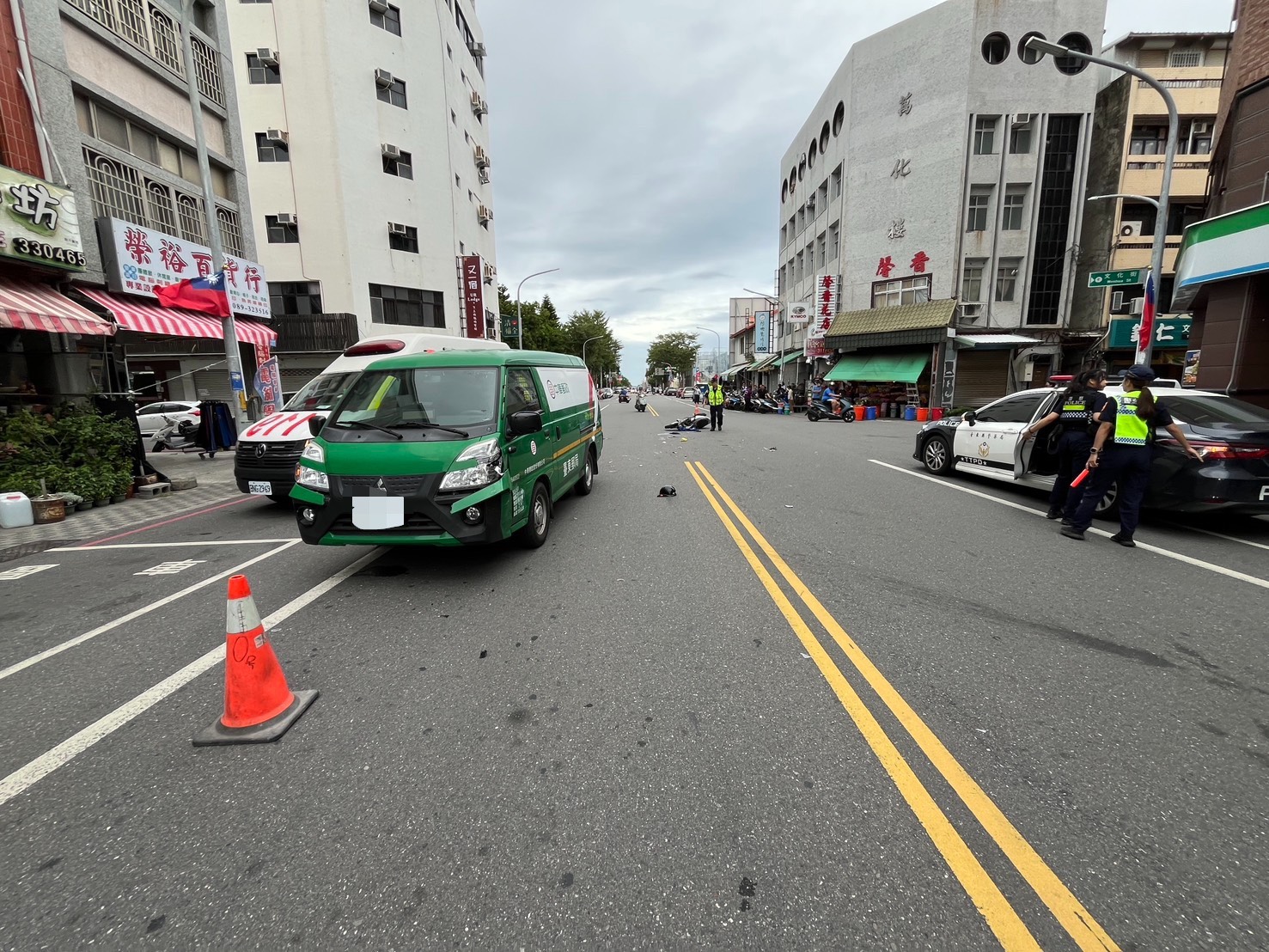 台東75歲翁騎車逆向與郵務車對撞傷重不治,警消人員到場調查處理。翻攝畫面