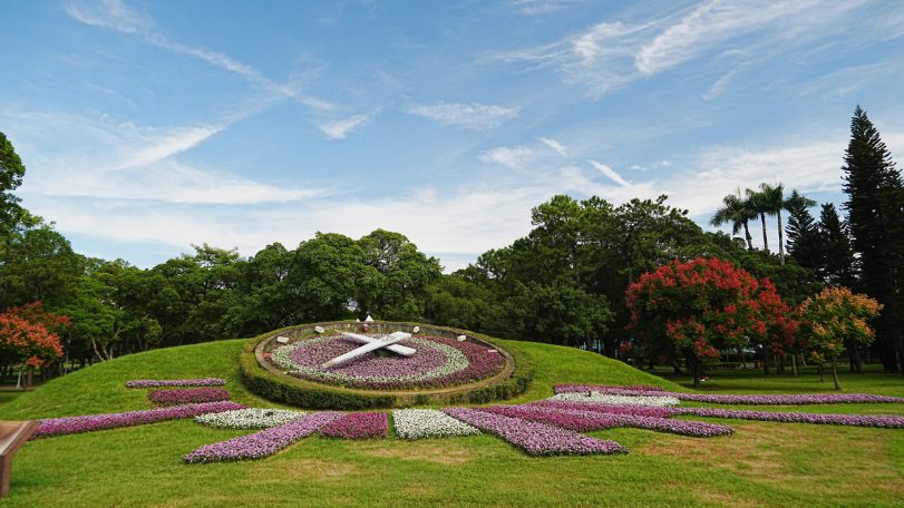 喜愛鳥語花香的朋友們,近日青年公園正在上演一場色彩繽紛季節秀,千萬要掌握時機來欣賞唷!青年公園水源路側的1號門廣場花鐘換上了秋季新裝,以粉紅、雪白、桃紅三色的日日春鋪成夢幻花毯,層層漸層的色彩在陽光下閃耀,從任何角度拍都猶如明信片風景,花鐘在日日春的妝點下顯得更加亮眼,吸引不少遊客駐足拍照、打卡上傳。
