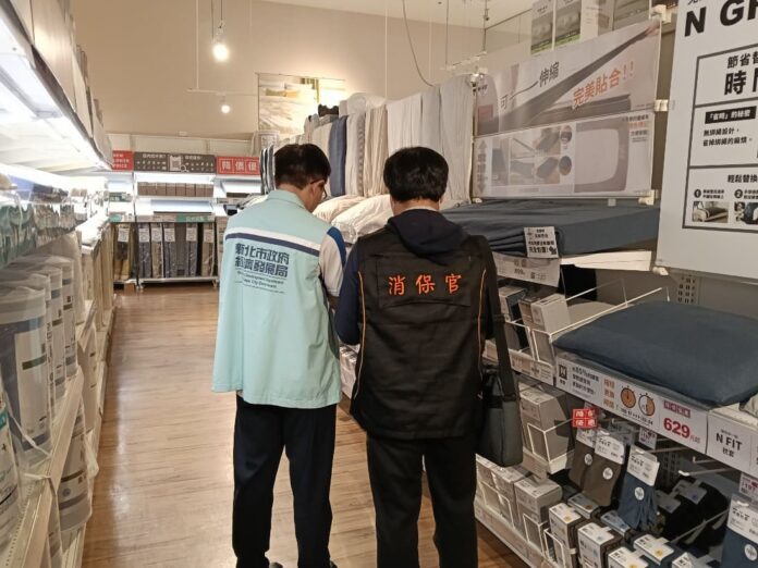 消保官會同經發局人員至賣場抽查寢具用品相關標示。(圖/新北市政府提供)