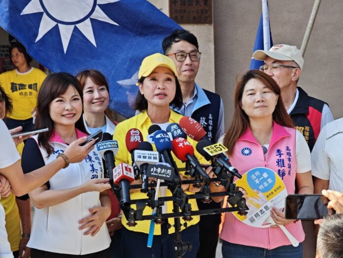 對於外界質疑看板未掛國民黨黨徽,她回應,大家都知道她代表國民黨,但若要翻轉高雄,一定要走向全市民,「不是從黨徽開始,而是從政見與實力開始」。
