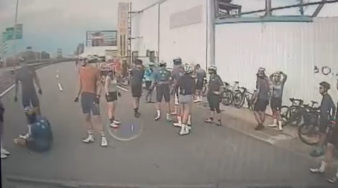 經警方初步了解,自行車隊行經台61線南下91公里及92.7公里處疑因路面上有車輛掉落之零件,導致騎士失去平衡摔倒。轄區員警接獲報案後立即趕赴現場協助並依規定製作紀錄,詳細事故原因仍有待進一步調查釐清。