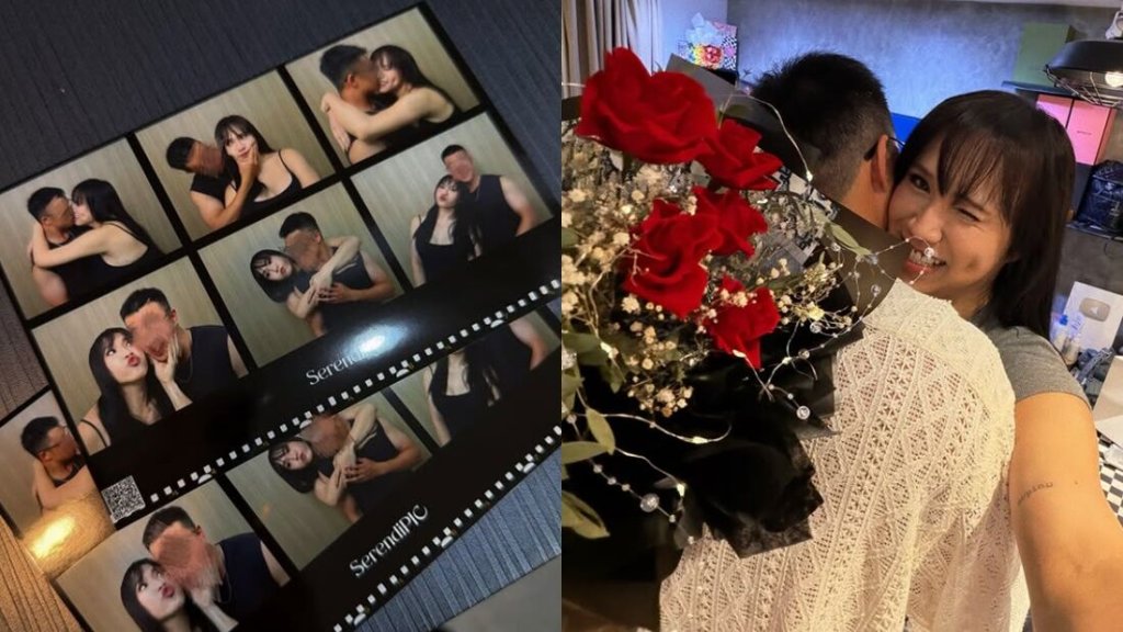 從她分享的照片中可見,黃小愛手捧鮮花,與男友相擁合照,臉上掛滿幸福笑容,還對鏡頭俏皮眨眼;另一張則是兩人深情擁吻、男友更將她一把抱起,甜蜜互動讓人直呼「太閃了!」