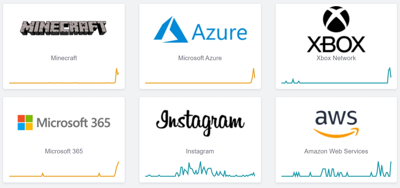 ▲從DownDetector可看見許多微軟旗下服務都有受到影響(圖/截自 DownDetector官網)