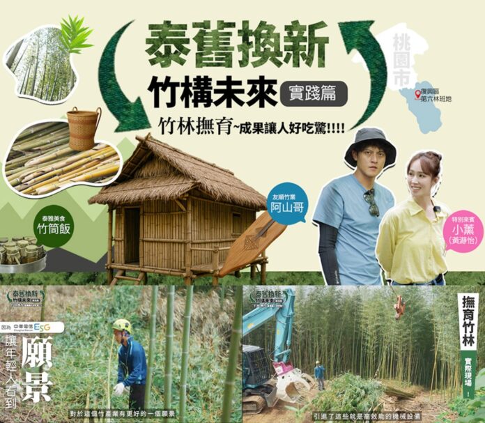桃園復興區大溪第六林班地,一片翠綠竹林隨風搖曳,這裡是自然生態的一部分,更是中華電信「泰舊換新 竹構未來」計畫的重要舞台。這項涵蓋33.7公頃的四年計畫,不僅守護竹林,也讓青年有機會返鄉就業,部落文化與永續產業能同時生根。主持人小孟邀請泰雅族藝人小薰一同見證撫育成果,小薰回憶父親曾搭建竹屋、製作口簧琴,母親則常煮竹筒飯去販售,從竹簍到竹器,竹子貫穿了她的成長歲月,更代表了泰雅族人世代相傳的智慧。綽號阿山哥的友順竹業負責人林志仁也笑說:「有泰雅族人的地方,就有台灣的桂竹。」