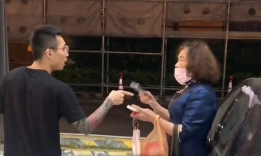 73歲婦人和鄰車駕駛互相飆罵。翻攝畫面