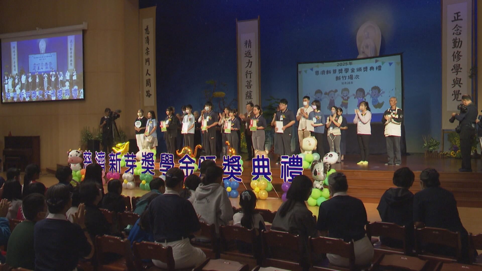 223位不同階段的孩子齊聚在新竹靜思堂,他們依序上台接受獎學金的頒獎,新芽獎學金設有進步獎、學習領域獎、孝悌獎、特殊表現獎、全勤獎等五個獎項,來鼓勵求學中的孩子。