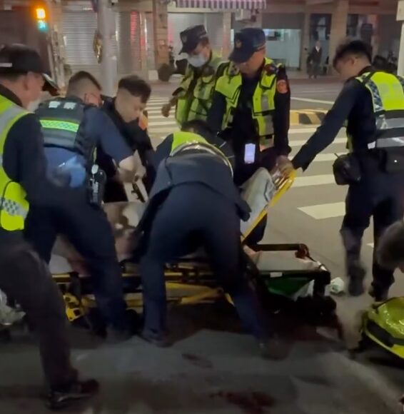 警消人員合力將嫌犯抬上擔架送醫。翻攝畫面