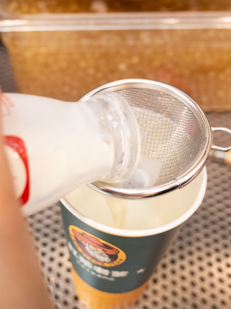 店家為追求飲品的口感要細膩滑順,將牛奶倒入紙杯時會再搭配濾網過濾一次,除了可以過濾掉雜質、避免結塊以外,更可以看清是否有漂浮物或沉澱的狀況,讓食安升級提升消費者的信賴。