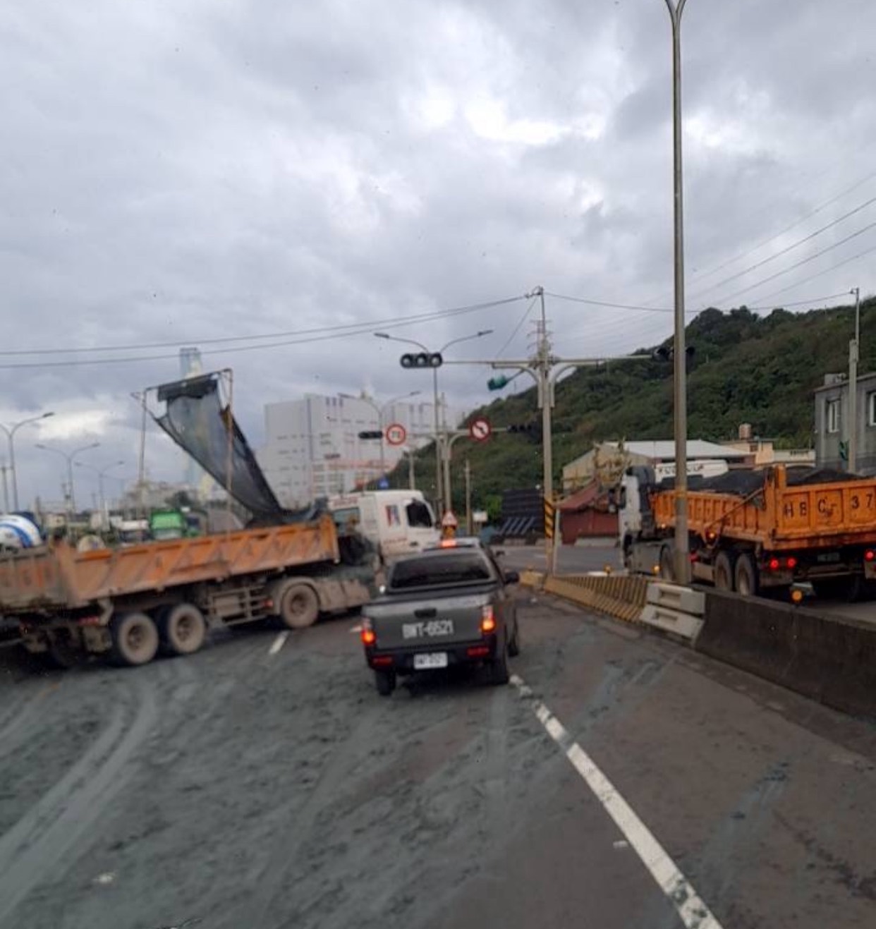 林口分局表示,今日15時許獲報林口區台61線北上15.9公里處發生事故,經查為吳姓男子(32歲)駕駛營業大貨車,於事故地點變換車道時不慎擦撞周男(62歲)自小客車。現場雙方駕駛均無受傷,亦無酒駕情事,現場於15時35分排除,散落之土石由工務段人員持續清理中。
