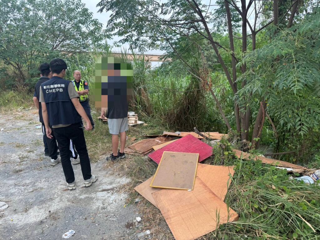 圖說:彰化警方帶著亂丟廢棄物的林姓負責人到場確認,訊後依發棄物清理法送辦