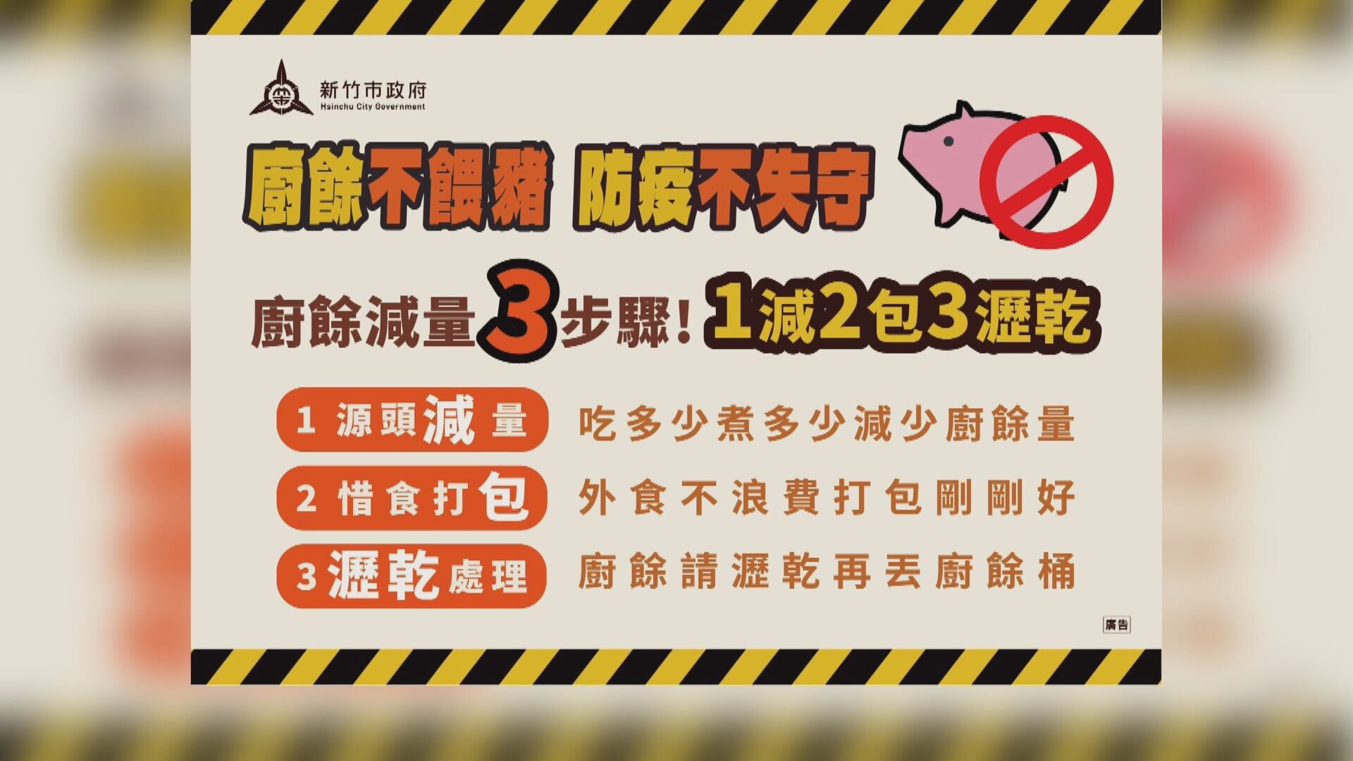 餐廳人員手腳俐落,快速把一整鍋鴨肉湯打包,準備讓賓客帶走,減少廚餘的產生。最近台灣檢驗出非洲豬瘟,而病毒來源可能與廚餘餵豬有關,因為每天台灣都有許多廚餘產生,把廚餘拿去餵豬,可以有效解決廚餘垃圾問題,現在廚餘不能餵豬了,新竹市環保局呼籲,希望民眾一起來減少廚餘的產生。
