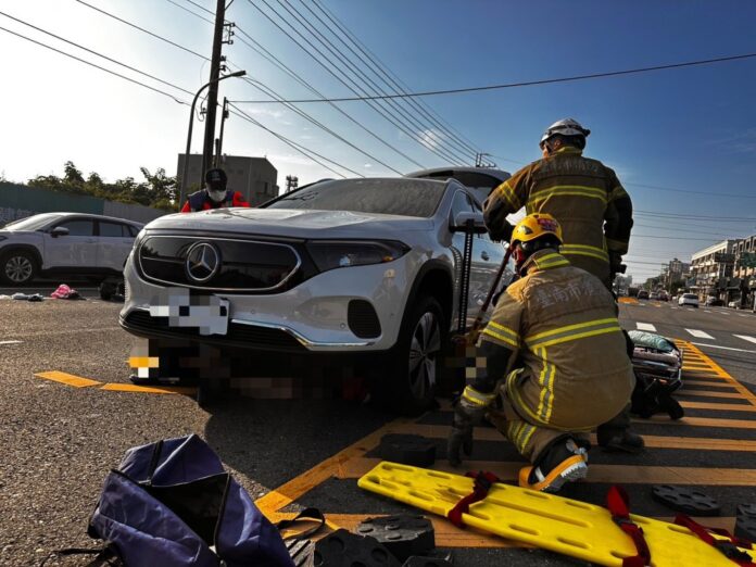 台南佳里區今(4)日上午發生一起嚴重車禍!兩輛機車在蕭隴文化園區附近發生擦撞,其中一名男騎士倒地後不慎被後方賓士車輾壓,當場受困車底,情況相當危急。消防人員趕抵現場後,立刻動用破壞器材搶救,成功將人救出,但該男子當下已失去呼吸心跳,經送醫搶救恢復心跳,目前仍命危觀察中。