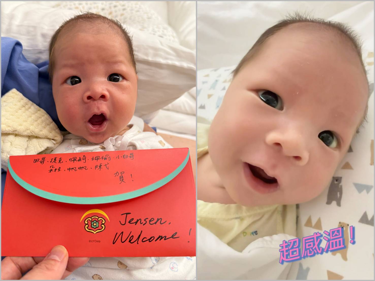 東森財經主播劉佩綺、洪珮瑜特別到訪探視,並送上象徵滿滿祝福的「熊大包」紅包。紅包上精緻的題字與祝賀語令劉盈盈驚喜不已,笑稱「這份長官的愛太有收藏價值,打算裱框留給兒子,作為未來的含金量教材」。