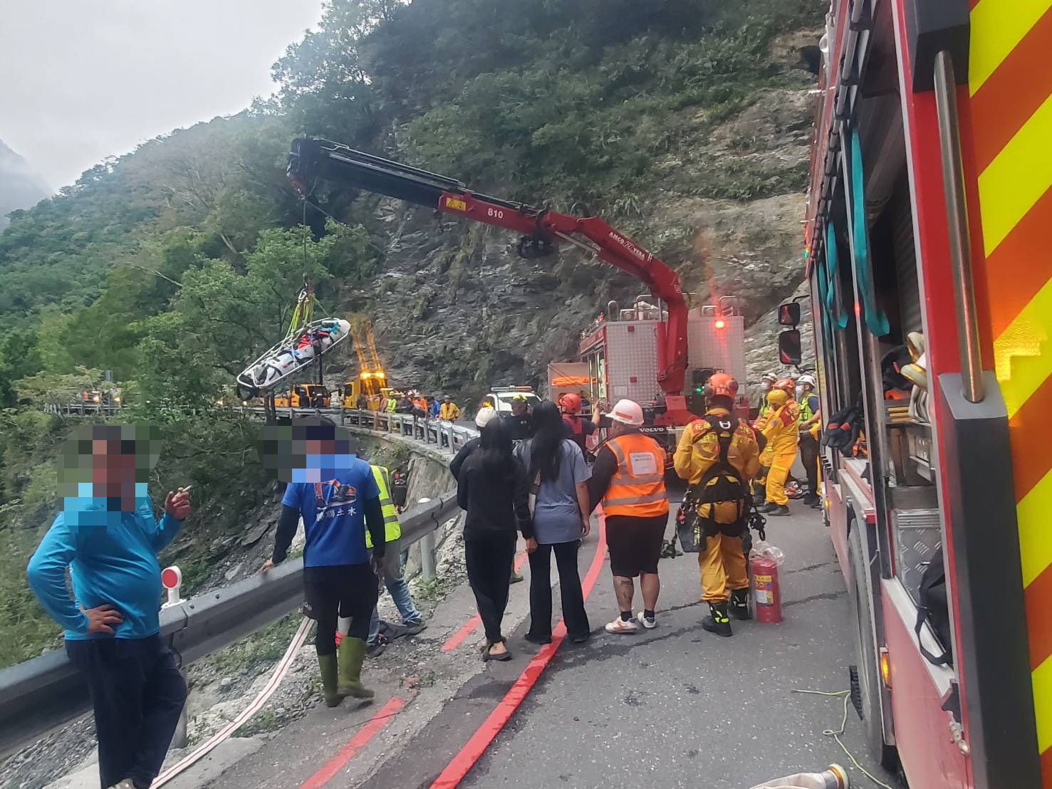 消防隊員吊掛救援。翻攝畫面