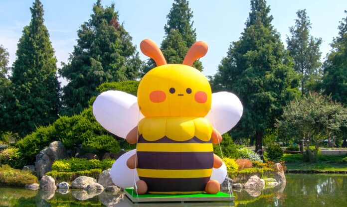 漫步成美文化園,映入眼簾的是藝術與自然共舞的絢爛景象。園區以「昆蟲」為主軸,重新串連動線,打造五大主題展區,邀您展開紙雕昆蟲的奇幻冒險:1,和園蜜境:巨型蜜蜂氣球飛上水池,倒映於波光粼粼的湖面,象徵自然循環與生命共舞。2,晶羽之道:落羽松步道串起晶瑩燈飾,光影流轉間,彷彿走進昆蟲羽翼的世界。3,巨大蜘蛛捕夢網:東園區的藝術裝置以夢境為靈感,象徵自然萬物間的連結與平衡4,水晶蝴蝶森林:位於播夢種子區的光影空間,閃爍著如蝶翼般的燈飾,營造奇幻氛圍。