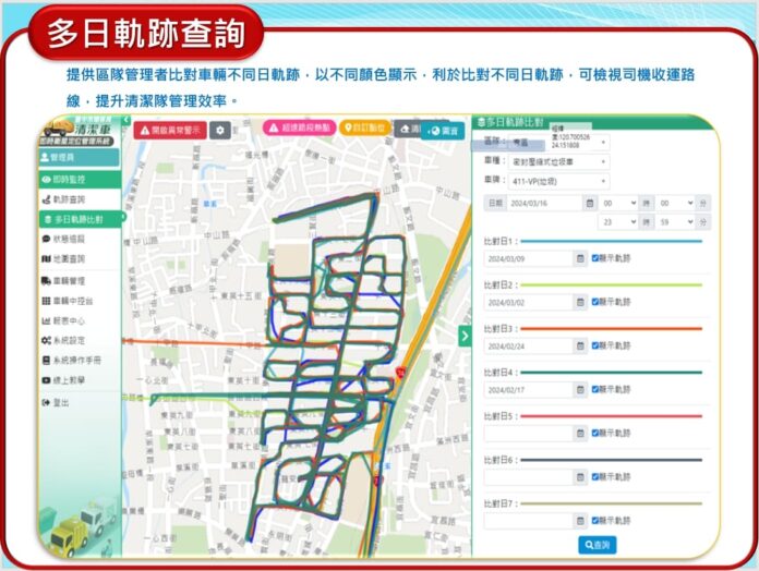 多日軌跡查詢。(圖/台中市政府提供)
