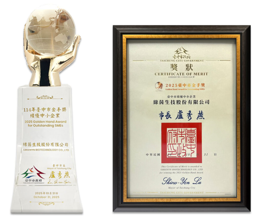 綠茵生技繼獲「國家品牌玉山獎」後,再度榮獲「