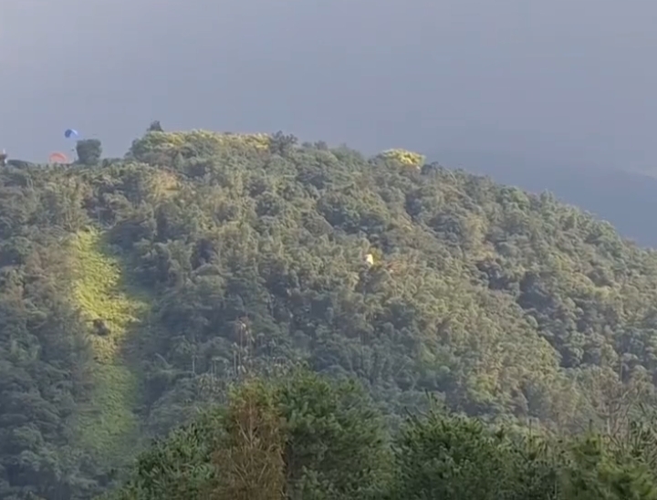 埔里飛行傘「空中擦撞」驚險墜林 網友驚呼:連天上都有三寶!(圖/翻攝 爆料公社 臉書)