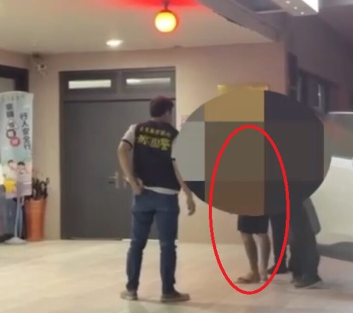 台東槍擊案兇嫌(紅圈處)被警方逮捕帶回偵辦。翻攝畫面