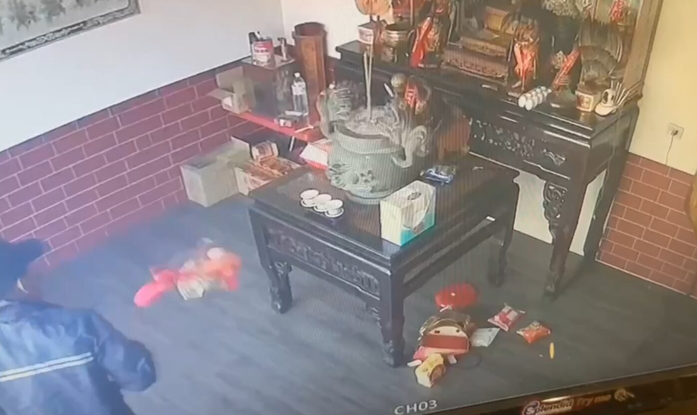 竊賊扯下神尊的金牌。翻攝畫面