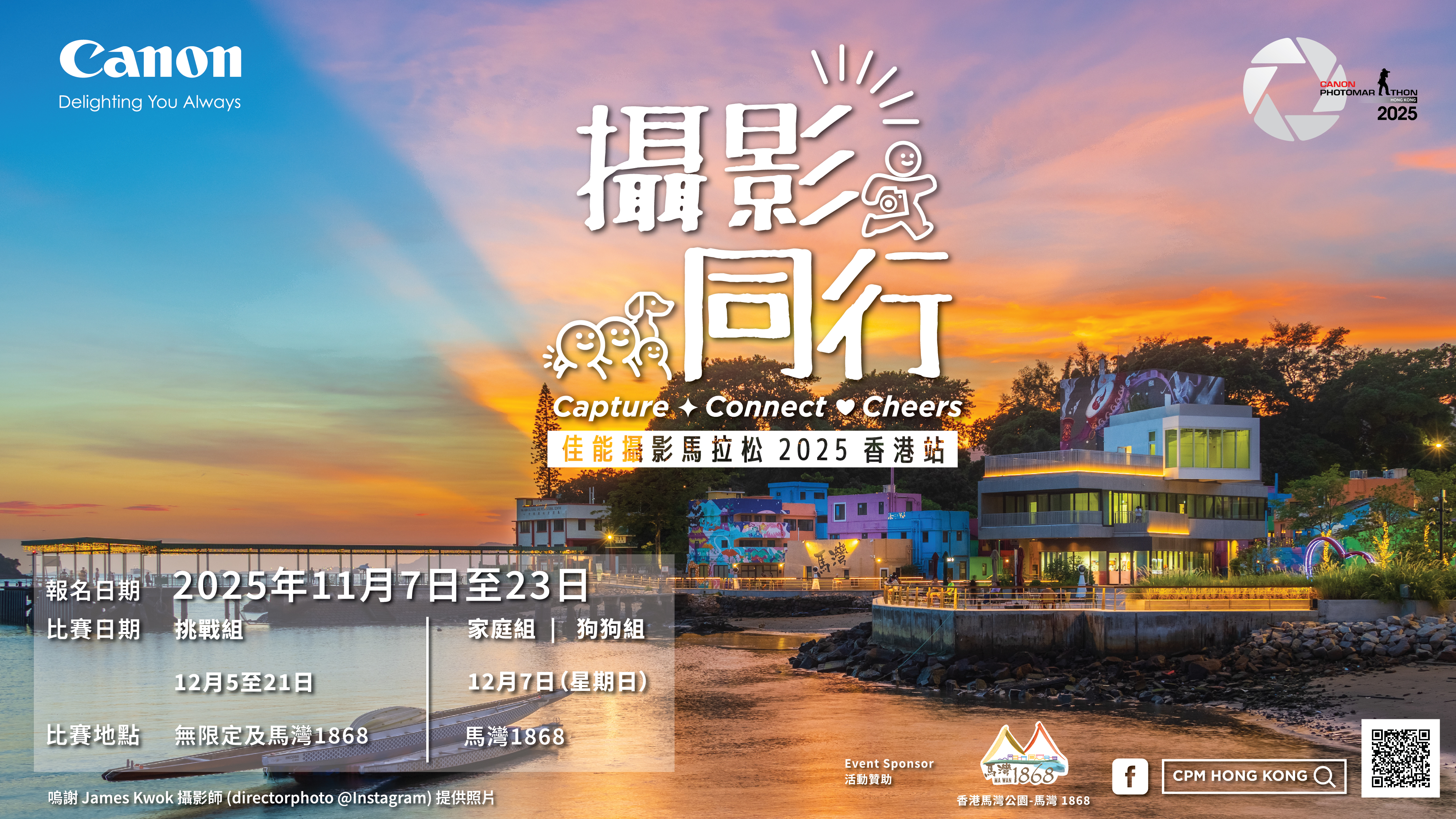 本屆比賽特別選址於全新旅遊地標「香港馬灣公園馬灣1868舉行。這個歷史悠久、充滿人文氣息的海島藝術社區,將成為參加者的靈感舞台,讓大家放慢腳步,細味光影與情感的交織。佳能香港一直致力促進本地攝影文化發展,深信攝影不僅是技術的展現,更是情感的傳遞與連結。透過這場攝影挑戰,鼓勵更多人以影像記錄生活點滴,實踐佳能「以影像連繫人心」的使命。