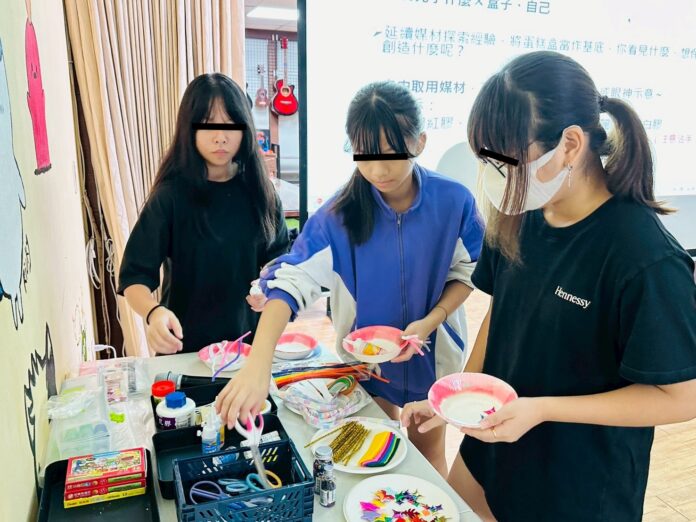 吳社工表示,我們發現許多孩子對職業的想像仍停留在課本或生活中最常見的選項,像是廚師、美髮或服務業,這次邀請具有藝術治療背景的講師,希望孩子理解職業不僅是謀生手段,也能結合興趣與價值,創造屬於自己的路。課程中,講師分享自己從心理學跨入藝術領域的經歷,並以創作作為媒介,引導孩子以感受和想像探索自我。