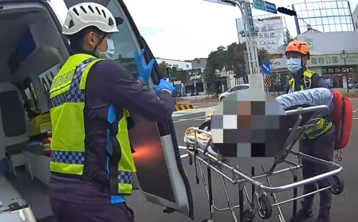 消防隊員將女駕駛送醫。翻攝畫面