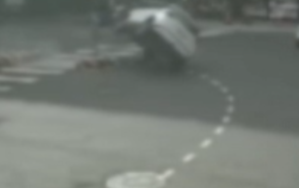 沙鹿休旅車自撞庇護島翻覆。翻攝畫面