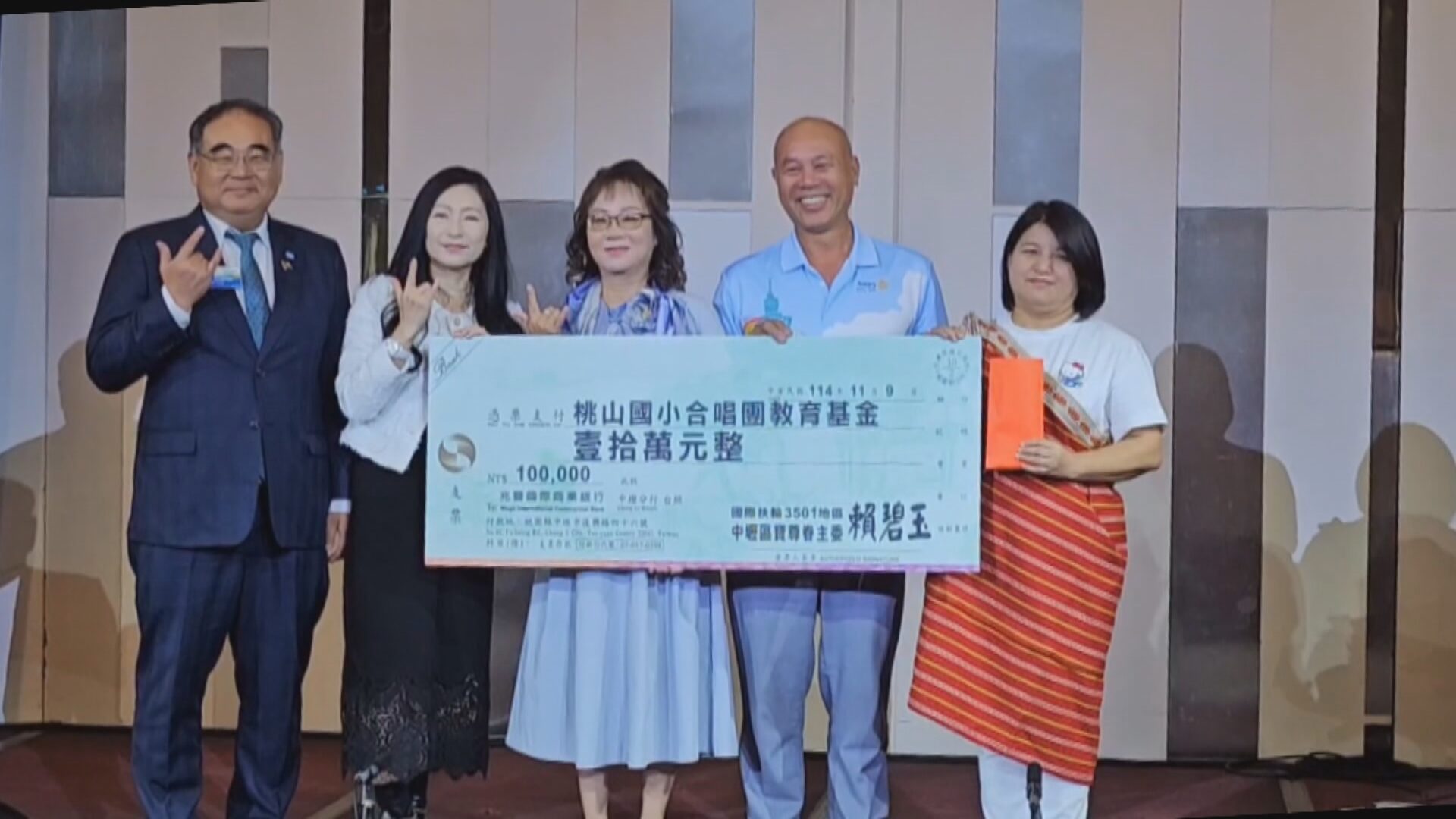 青翠明亮的美聲,為聯誼活動帶來精彩的音樂饗宴,泰雅學堂桃山國小合唱團屢次在國際舞台上奪得大獎,為支持孩子們的音樂之路,中壢區寶尊眷主委賴碧玉代表團隊,捐贈10萬元給桃山國小合唱團。