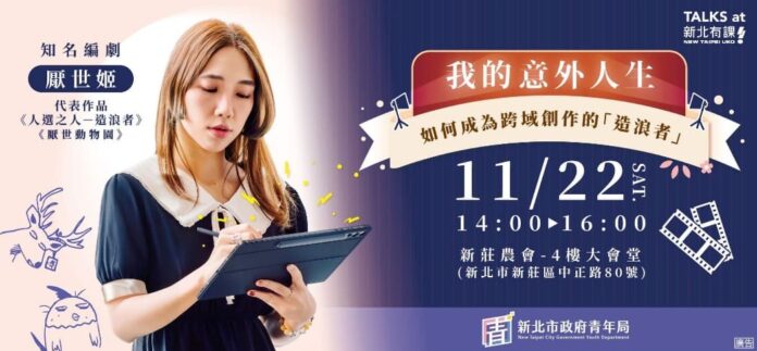 還記得台劇《人選之人—造浪者》帶給我們的善惡糾結嗎?究竟是什麼樣的觀察才能寫出耐人尋味的劇本?新北市政府青年局「新北有課UKO」11月名人講座邀請到《人選之人—造浪者》編劇之一,同時也是《厭世動物園》創作者「厭世姬」,將於11月22日以「我的意外人生:如何成為跨域創作的『造浪者』」為題,分享從圖文創作到影視編劇的斜槓經驗,探討如何在不同領域中延伸創作能量,打造個人品牌。歡迎有興趣的民眾到新北市青年局官網報名參加。