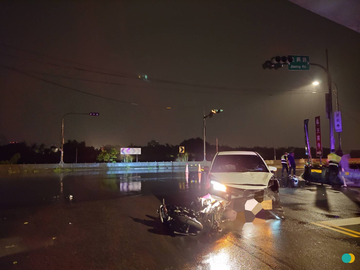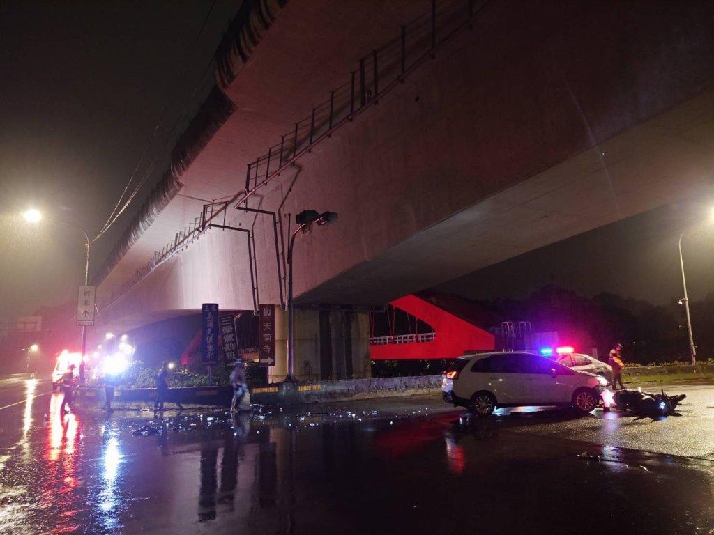 三峽深夜車禍!深夜左轉沒看見 小客車撞飛重機騎士翻落邊坡.(圖/警方提供)
